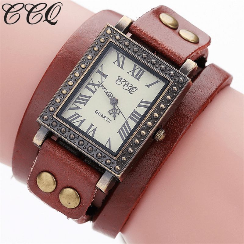 Vintage Retro Stil Herreklokke Rektangelskive Justerbar Lærreim To Låse Kvinner Kvartsklokke