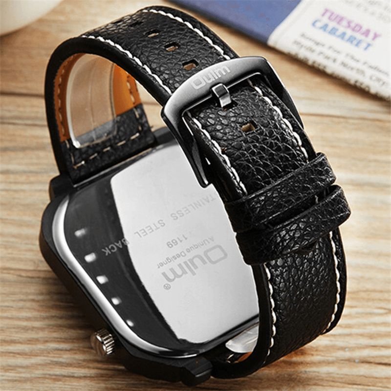 Vintage Large Dial Herre Watch Compass Dual Time Zone Square Quartz Watch