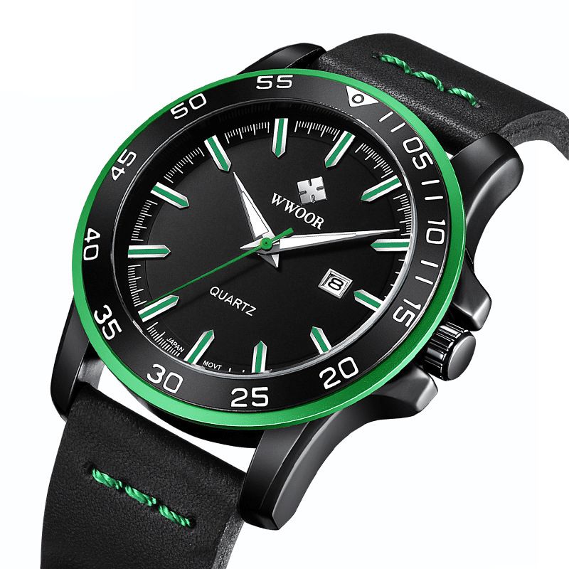 Wwoor 8834 Datovisning Uformell Stil 5Atm Vanntett Herreklokke Skinnbånd Kvartsklokke