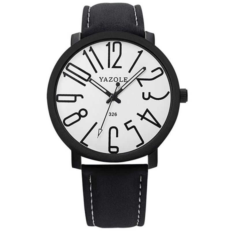 Yazole 326 Fashion Casual Herreklokke Stor Urskive 3Atm Vanntett Luminous Pointers Lærreim Kvartsklokke