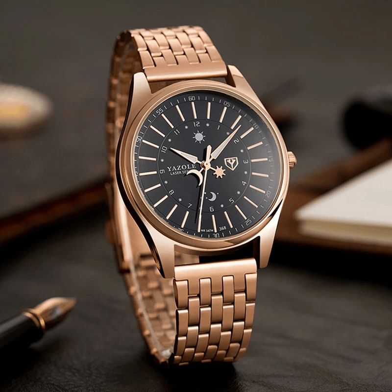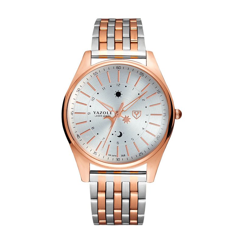Yazole 368 Mote Herreklokke Lysende Kalender Stålbånd Business Life Vanntett Kvartsklokke