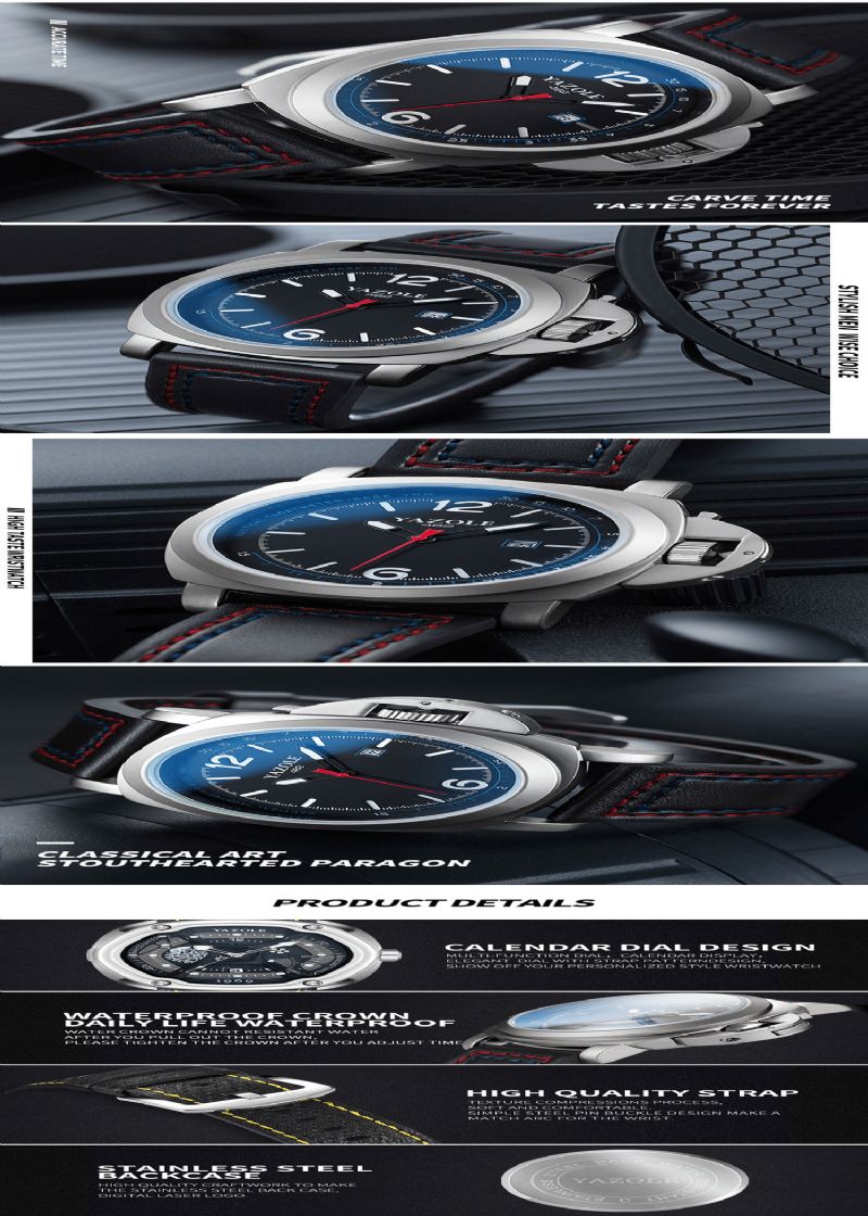 Yazole 462 463 Lysende Skjermkalender Klassisk Skinnbånd Herrekvartsklokke
