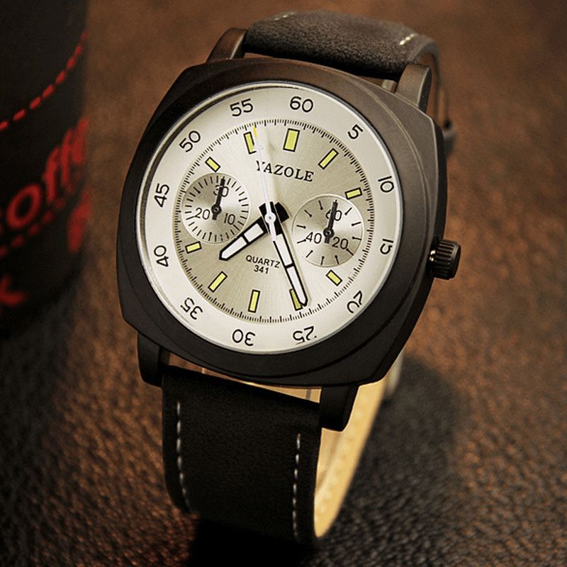 Yazole Square Dial Herrearmbåndsur Vanntett Lysende Hender Kvartsklokke