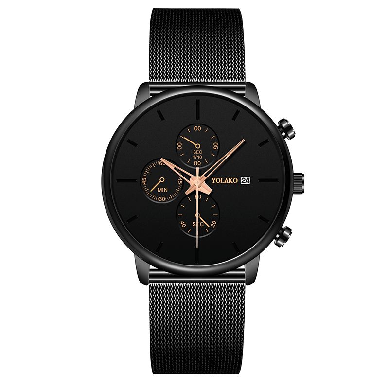 Yolako A0543 Masculino Mote Lysende Kalender Herre Rustfri Stålreim Kvartsklokke